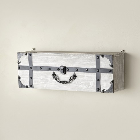 Lakeside suitcase wall shelf with distressed look, decorative door handle. 4.4 out of 5 stars 24. Whether used as a focal point, or to display your favorite things, this wall shelf it the perfect addition to any home.hang in living room, dining room, or kitchen to add a splash of soft color with space to display small plants, framed pictures, or trinkets. Small shelf measures 19.5l x 8.5w x 6.75h in. Clip together both hanging latches to keep suitcase from extending further than 90 degrees.