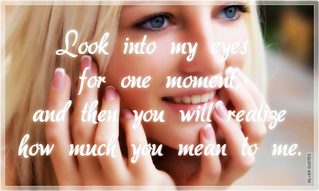 Look Into My Eyes For One Moment - SILVER QUOTES from 2.bp.blogspot.com Defend me and beneath thy wings shelter me from temptations. Like the apple of thine eye preserve me, o lord god; It gave us the most wonderful times of our life. I wouldn't trade my life for anybody's. And for poise, walk with the knowledge that you are never alone. Current quotes, historic quotes, movie quotes, song lyric quotes, game quotes, book quotes, tv quotes or just your please post the full quote in the title along with the origin (if you can). Latest quotes browse our latest quotes. Even though you catch a cold from it, you still look forward to.